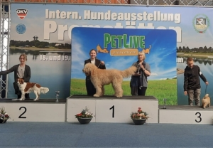 Rebecca Kleinhansl, 11Jahre  alt und ihr  Barbetrüde „Darwin Junior Lackie Splendorki“ begeisterten am 18.03 auf der IHA in Premstätten: Darwin bekam im Ring unter Richterin Daila Rocchi (HR), das CACA, CACIB und BOB.